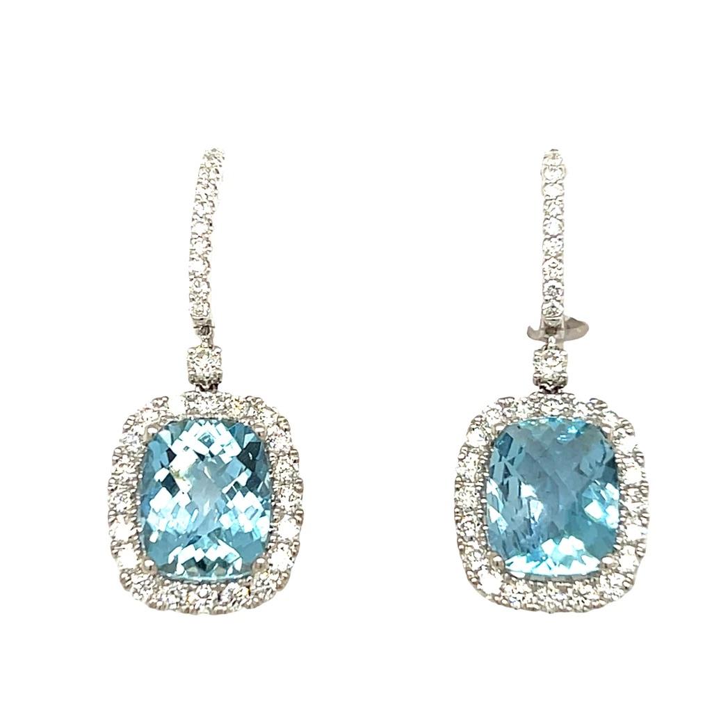 Set with two checker board cut Aquamarine stones for a total weight of 6.82cts.