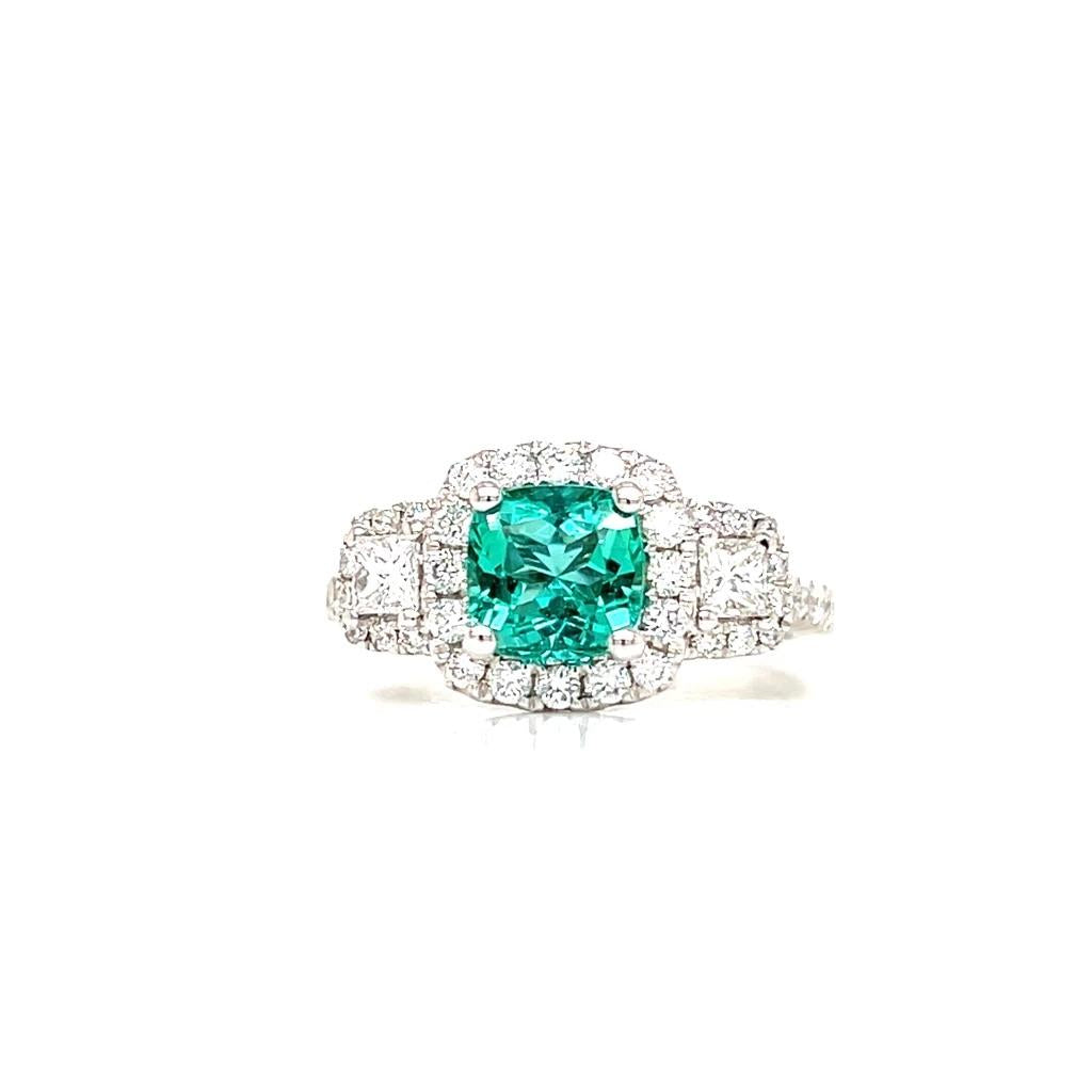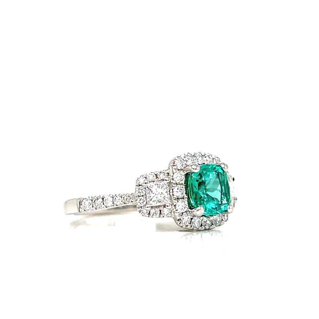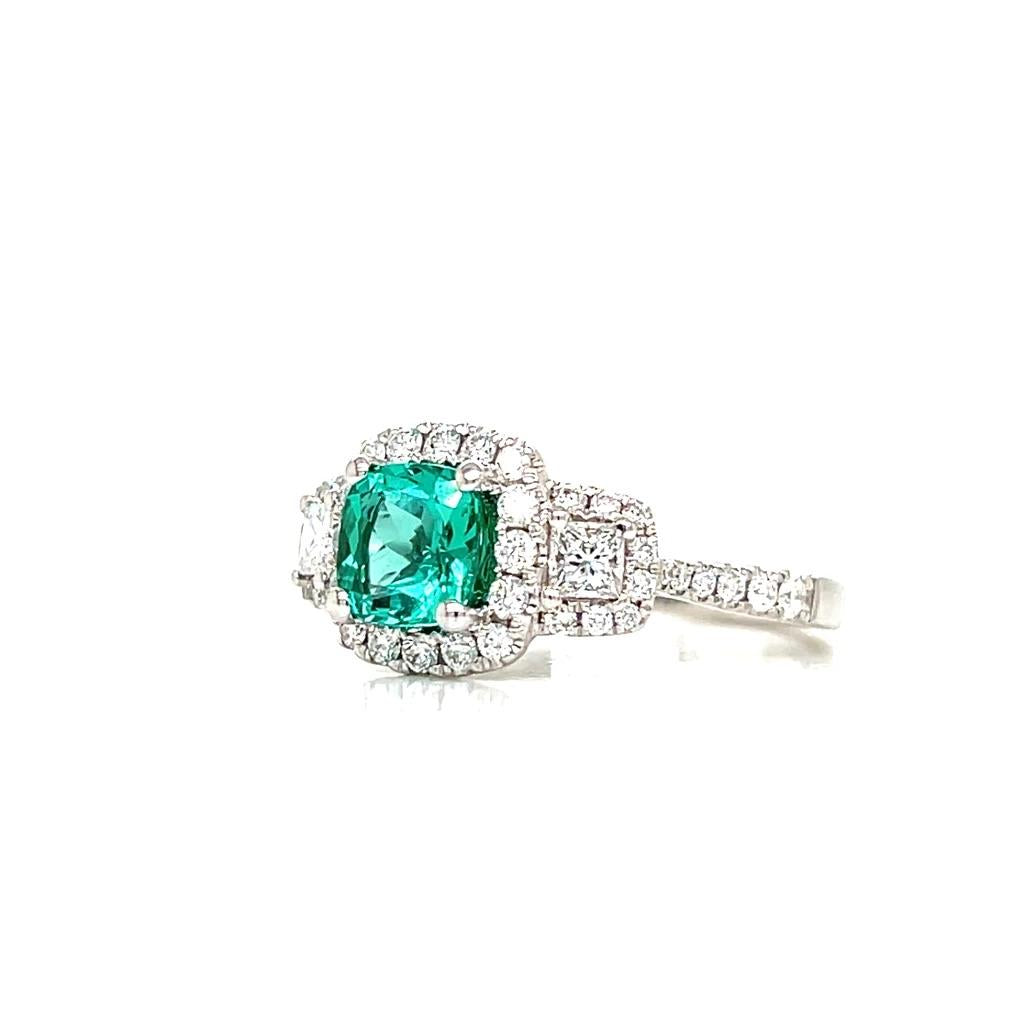 Set with a Cushion cut Emerald weighing 1.07cts.