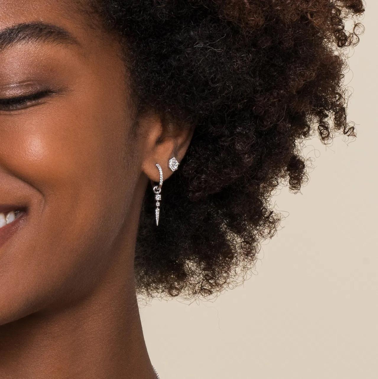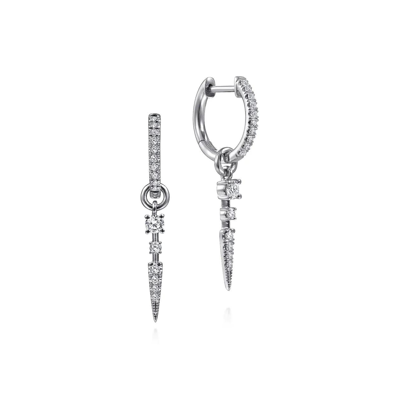 14K White Gold 10mm Diamond Huggie Earrings with Spike Drops