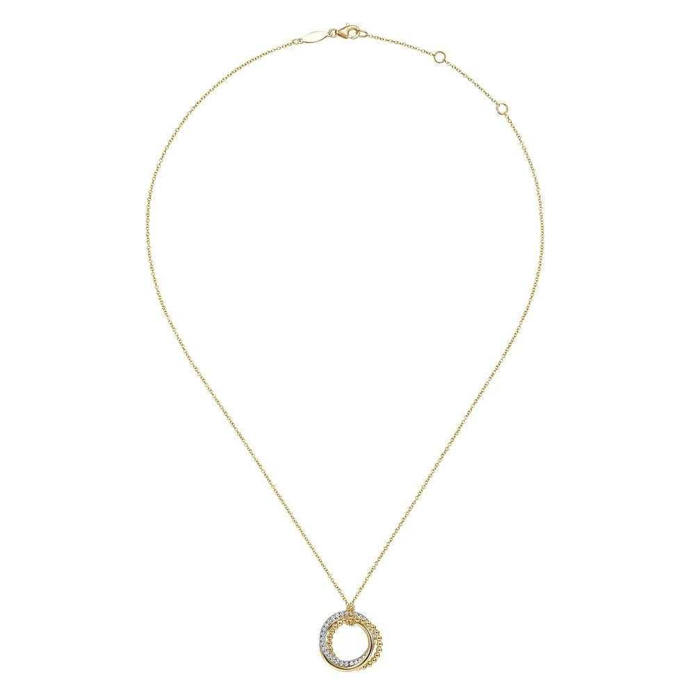 14K Yellow - White Gold Bujukan Diamond Interlocking Circles Pendant and Necklace.