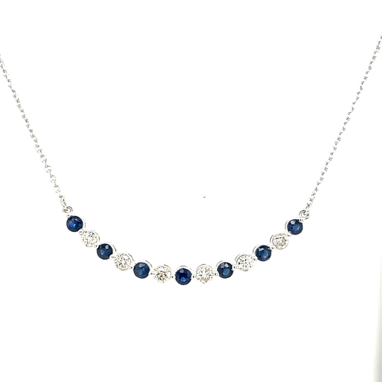 14k White Gold Sapphire and Diamond "Smile" Necklace