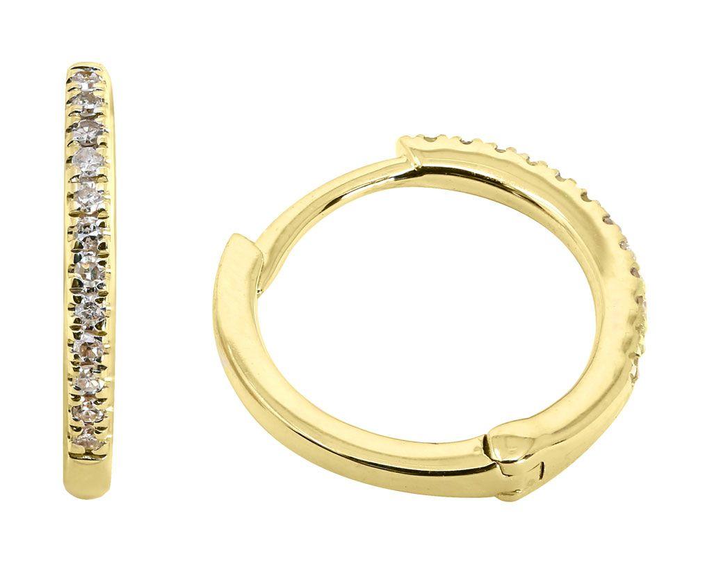 14k yellow gold diamond hoop huggie style earrings - 14mm diameter - 24 round prong set diamonds .15cts total