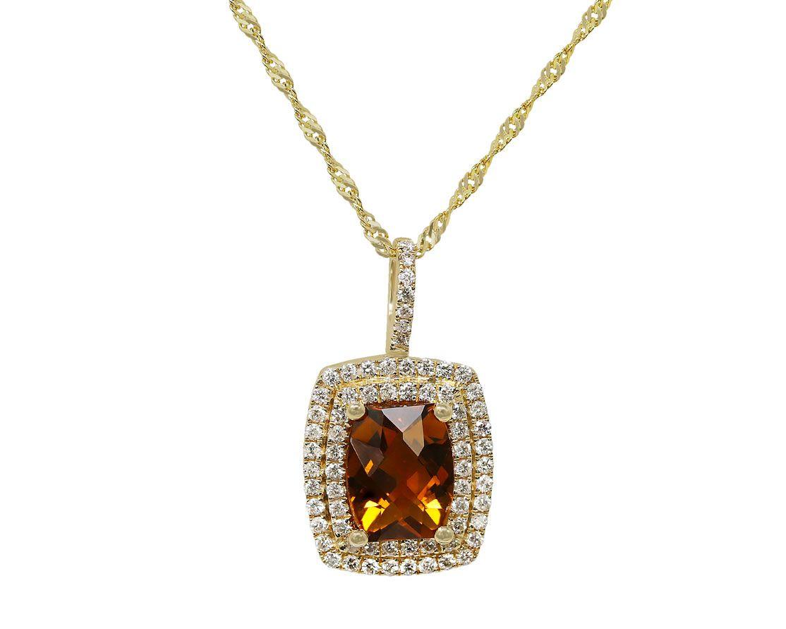 14k yellow gold citrine and diamond pendant - one fine deep gold elongated pineapple cushion cut citrine 2.24cts - 67 round brilliant cut diamonds .52cts total - 16 - 18" adjustable diamond cut rope chain w / lobster clasp
