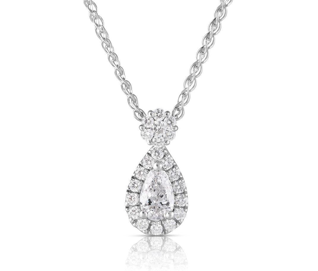 14k white gold diamond drop pendant - one pair shaped diamond .28cts - 21 round brilliant cut diamonds .23cts total - 16 - 18" adjustable diamond cut woven wheat chain / w/ lobster clasp