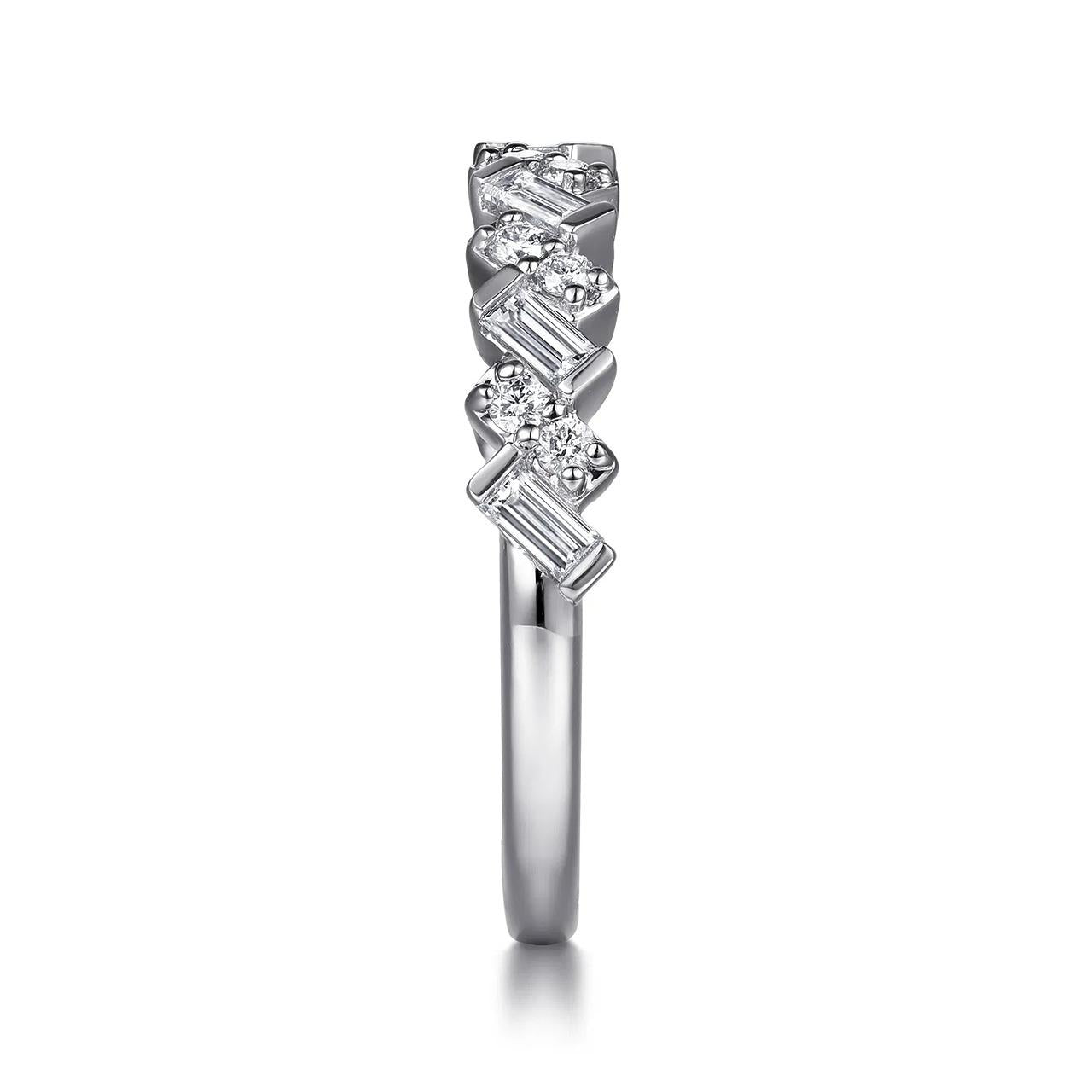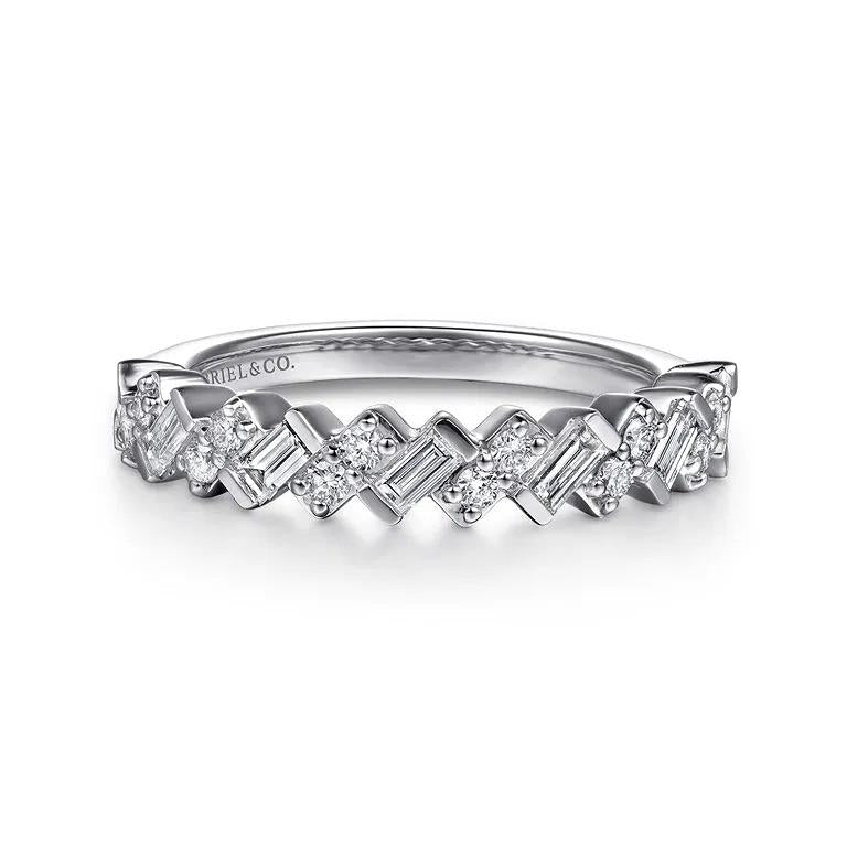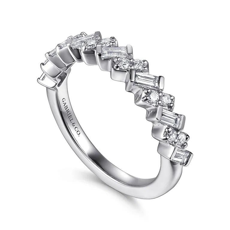 Set with alternating Round Brilliant cut Diamonds and Baguette Diamonds for a total weight of .59cts.