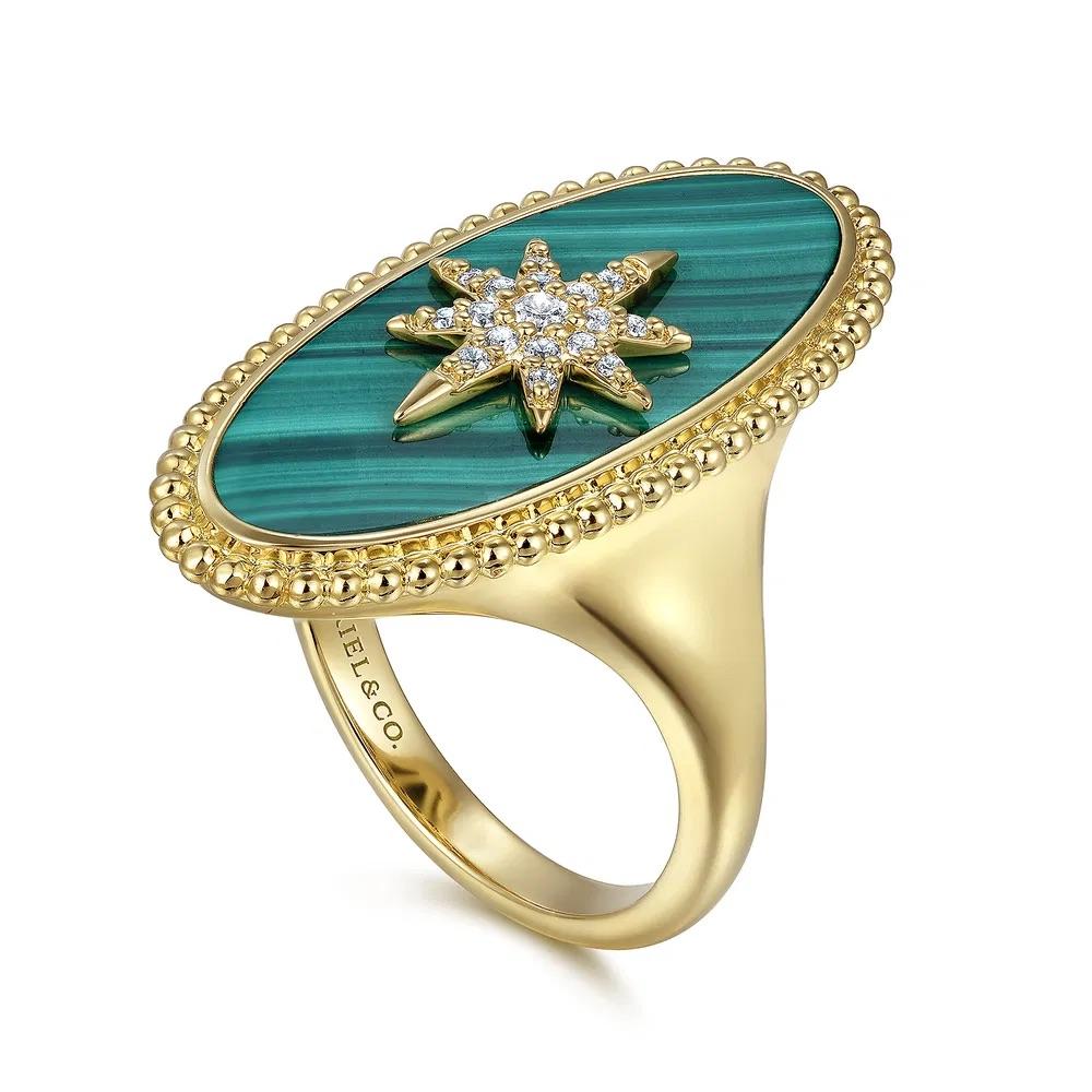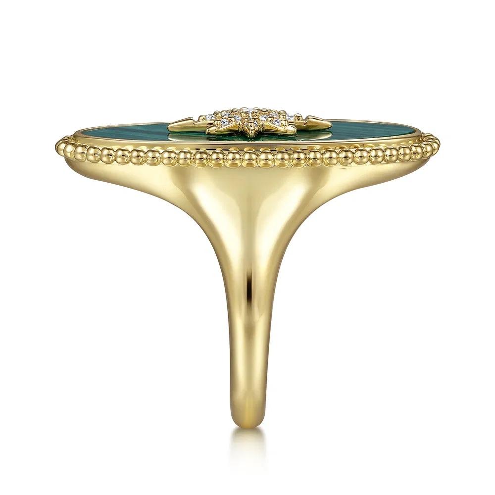 Elongated Oval Malachite Inlay Starburst Signet Ring